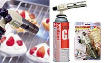 はい、カセットコンロ用のボンベにつけて使える料理用のバーナーです。実は、マニラにいるときに、ホテルの料理教室で紹介され、安くで買えるから、買っとこう!と思いつつ、そのままになってしまった品なのです。調べてみると、iwatani製品でも、もっと安いものがあるのですが、それは火をつけるためのもので、キャンプなどで使うためらしく、お料理用はこの製品のみです。お菓子(もちろん、クリームブリュレ!)の他にも、肉、魚(刺身)をあぶったり、焼き豆腐なんかも作れます。ただ、問題は「何処で使うんだ?」ということ。キッチンでバーナーを使うスペースは我が家にはない!だから、オーブンのトレイを出して、その上でやるのがいいかな。今から楽しみです。