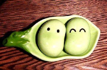 これはそら豆の箸置きです。2つ入りで、サヤに入ってます。かわいいでしょ?