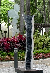 ガラス、石(大理石)、スティールを用い、water・stone・seedの持つパワーをあらわしています。