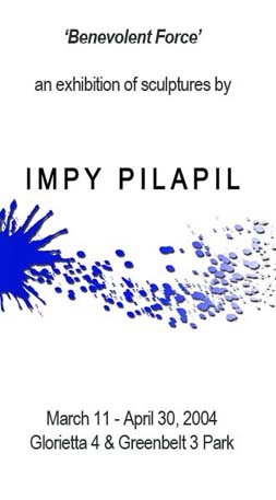 2004年3月11日にOPENしたフィリピンを代表する彫像作家、インピー・ピラピルの野外展示会がGlorietta 4 とGreenbelt3・4の公園で開かれています。2004年3月末までの予定が1ヶ月延長!見て、触って彼女の作品を楽しむ絶好の機会です!