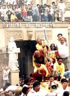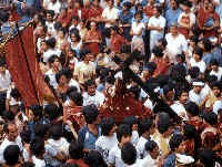 Kings:Araw ng tatlong hari) クリスマスシーズンを締めくくるキリスト教の行事。特にマケンドゥケ島のサンタ・クルスとガザンでは3人の王の仮装をした華やかなパレードが行われます。写真奥の馬にのっているのが、賢者。 1月9日(木) ブラックナザレの祭り (Black Nazarene:Prusisyon ng Santo Nino) - Manila