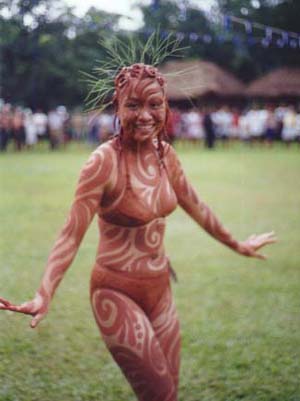 Festival (マケンドゥケ島) イースターを祝う宗教劇で、キリストを殺そうとしたローマ兵士ロンヒネスが、その返り血で見えなかった目が見えるようになったという奇跡から、キリスト教に帰依したという伝説をカラフルな面と衣装で再現するもの。
