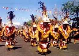 シヌログ祭りの、ストリートドラマパフォーマンスは、ただのダンスではなく、San Miguel と Lusbel (Lucifer)の戦いを再現しているもので、ストーリー性のあるものだ。つまり、戦いの舞ということ。 1月第4週末 ディナグヤン祭り Dinagyang Festival - Iloilo City イロイロ市で毎年1月の第4週に行われるお祭りユニークな衣装と熱狂的なダンスが一日中(夜も)繰り広げられます。