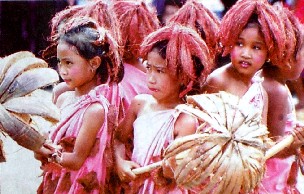 (ココナッツの外皮を利用した可愛い衣装の少女たち)