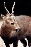 deer (Cervus alfredi)は、絶滅の危機にある鹿です。Prince Alfred's Rusaとも呼ばれるこの鹿は、体長が80センチで、長くて柔らかい毛が白っぽい黄色の斑を覆っています。 1960年から70年にかけて、農業を促進するためにフィリピンの殆どの森で木が伐採されたため、フィリピン鹿の数は激減していきました。1990年の調査では、わずかに13頭が確認され、97年から2000年にかけて、その数を増やしたため、現在は200頭まで回復しています。 |