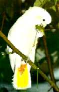 フィリピンオウム オウム属の白色コバタン系。フィリピンからインドネシア、オーストラリア、ニューギニアにかけて生息し、白色を基調とした羽色で、頭部に冠羽があり、寿命が50年と長いことでも有名です。体長はセンチ、体重は0.29キロ。 フィリピンではパラワンでのみ発見されています。不法取引では、マニラの市場で$500ぐらいで売られているそうです。 |
