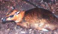 パラワンの南、Balabac 島に生息する世界一小さい鹿は、ウサギのようで、体長(肩の高さまで)が40センチ足らず。夜行動し、昼間は森の中の低木の枝でじっと休んでいます。 |