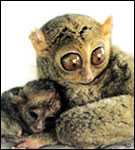 2002年4月4日付けInquirer紙参照 世界最小の猿 メガネザル科の原始的なサル。フィリピンタルシウスは、茶褐色または灰褐色で、頭胴長約10センチ。