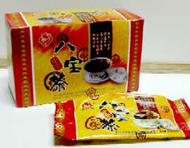 * マニラのチャイナタウンで発見した八宝茶は、お茶ッ葉が紅茶でした。常に在庫があると言うわけではないでしょうが、いろいろな種類の物があると思うので、注意して観察して見るといいでしょう!5袋入り70ペソ(2002年5月:香港参薬行にて)