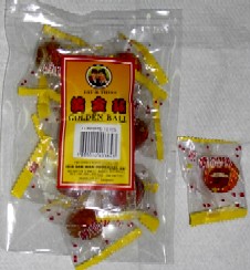 お気に入りのナツメ茶と同じFAT&THIN社の飴。実際の製品は台湾の聖品食品栄誉出品のものらしい。Greenhillsの京華中薬行で発見!飴の中身はもちろん丸ごとの梅(種入り)です。回りは甘く、なかの梅と絶妙な組み合わせ!1袋10個入りで40ペソ(2002年10)