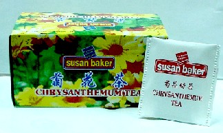 ルスタンで、思わず引き寄せられて箱を手にした一品。susan bakerのティーバックです。夏の暑さよけには菊花茶というのが中国人の常識。肝臓にもよく、赤目にも効果アリとか。強い菊花の香りも楽しみましょう。(2003年3月)