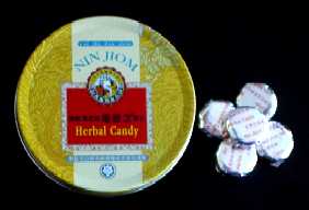 * NIN JIOMの喉あめ。缶入りで香港参薬行では95ペソ、Greenhillsの京華中薬行では130ペソ(2002年8月)DECでは110ペソ。