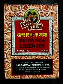 * PEI PA KOAの喉あめ。今回は、薬局ではなく、Greenhills聊應斎で発見。12粒入りで30ペソ(2003年10月)